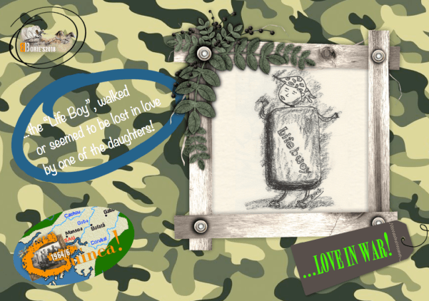 …o amor é como uma guerra, fácil de começar, mas muito difícil de acabar!. Não sabemos onde ouvimos ou já vimos esta frase escrita, mas estando num local, onde o cenário de guerra era constante, o “Life Boy”, andava ou parecia que andava perdido de amores por uma das filhas do “Libanês”!. (love is like a war, easy to start, but very difficult to end!. We do not know where we heard or have already seen this written phrase, but being in a place where the scene of war was constant, the “Life Boy” walked or seemed to be lost in love by one of the daughters of “Lebanese”)!.
