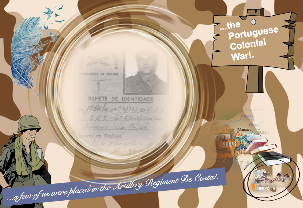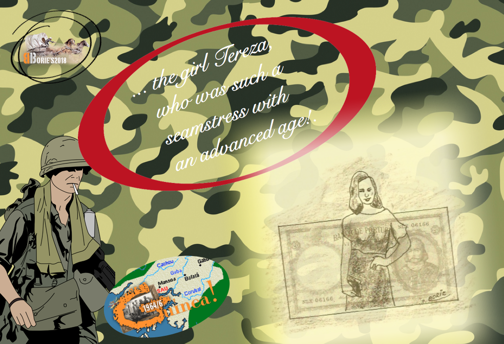 …mas onde alguns irmãos combatentes, que faziam parte das Forças Armadas de Portugal, soldados africanos recrutados nas aldeias ao norte no aquartelamento onde estávamos estacionados, que ao nosso lado combatiam os guerrilheiros, ajudavam a criar caminhos para atitudes raciais, compartilhando perconceitos profundamente desonestos, pois muitas vezes ofereciam as tais irmãs, primas ou tias, ao tal militar europeu, a preço de pequenos previlégios, como por exemplo serem candidatos a vestir a farda camuflada, com uma boina militar na cabeça, ou levarem uma lata com algum resto de comida para as suas aldeias, pois num país em guerra e sem qualquer futuro, eles ainda jovens, viam nessa atitude, enfim, algum modo de sobrevivência!. (But where some fighting brothers, who were part of the Armed Forces of Portugal, African soldiers recruited in the villages to the north in the barracks where we were stationed, who fought against the guerrillas, helped to create paths for racial attitudes, sharing deeply dishonest, because they often offered such sisters, cousins or aunts, to such a European military man, at the price of small privileges, such as being able to wear the camouflage uniform with a military beret on his head or take a can with some of food for their villages, because in a country at war and without any future, they still young, saw in this attitude, anyway, some way of survival)!.