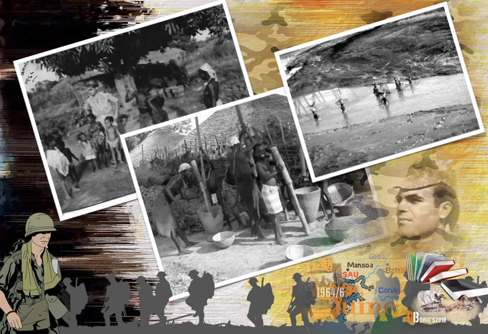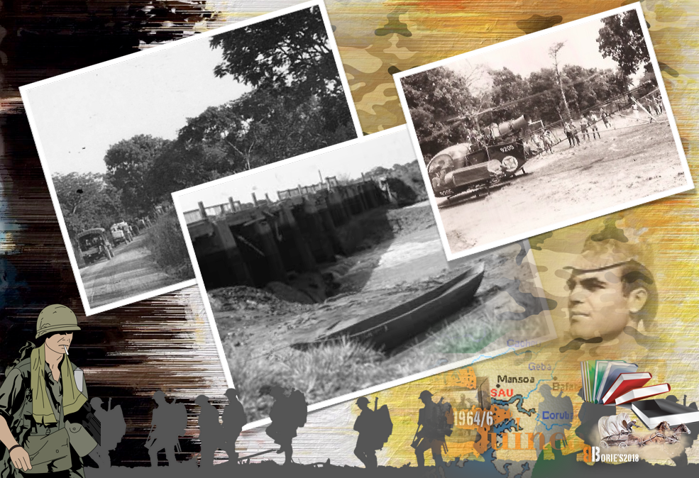 …sobrevive dois anos naquela zona de combate, estacionado no aquartelamento da vila de Mansoa, combatendo e ajudando a construir este posto avançado, tal como nós, onde já mencionámos o seu nome por diversas vezes, em que a sua personagem era o principal protagonista, e claro, entre outros factores, com muita sorte, regressa a Portugal!. (Survives for two years in that combat zone, stationed in the quarter of the village of Mansoa, fighting and helping to build this outpost, just like us, where we have mentioned his name several times, where his character was the main protagonist, and of course, among other factors, with great luck, returns to Portugal)!.