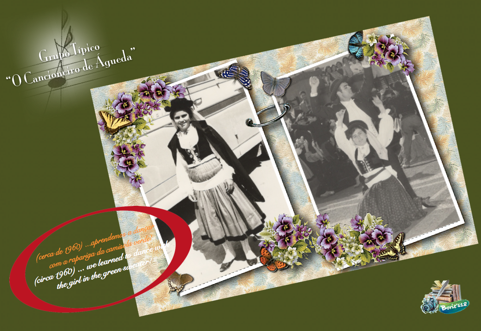 …pediu aos nossos progrenitores, se consentiam que fizéssemos parte do futuro Grupo de Folclore que se estava a organizar na vila!. Lá fomos, usando alguma roupa dos nossos irmãos mais velhos e, de alguns companheiros da escola primária, que assim que souberam da notícia, nos proporcionaram sapatos, calças e uma linda camisa!. Não havia a menor ideia do que era dançar em grupo mas, com a ajuda daquela rapariga da camisola verde, que era ainda mais linda com as mangas arregaçadas, aprendemos!. (Asked our progrenitors, if they allowed us to become part of the future Group of Folklore that was being organized in the village!. There we went, wearing some clothes from our older brothers and some of our classmates from the elementary school who, as soon as they heard the news, provided us with shoes, pants and a nice shirt!. I had no idea what it was to dance in a group, but with the help of that girl in the green sweater, who was even more beautiful with her sleeves rolled up, we learned)!.