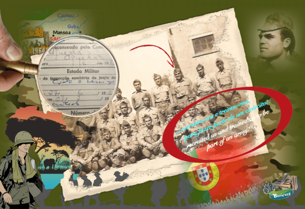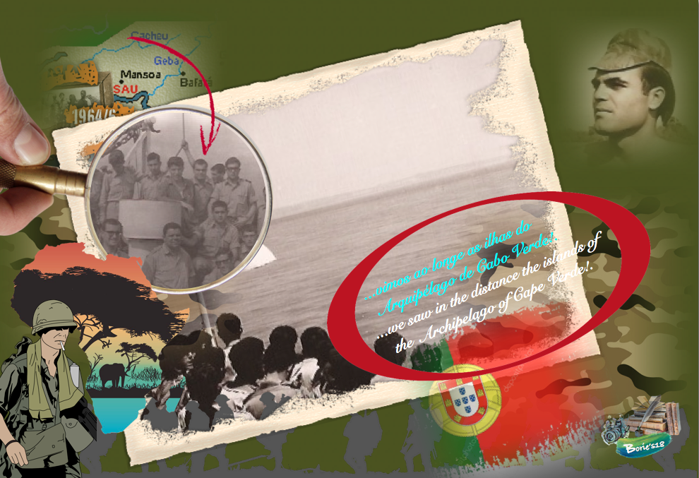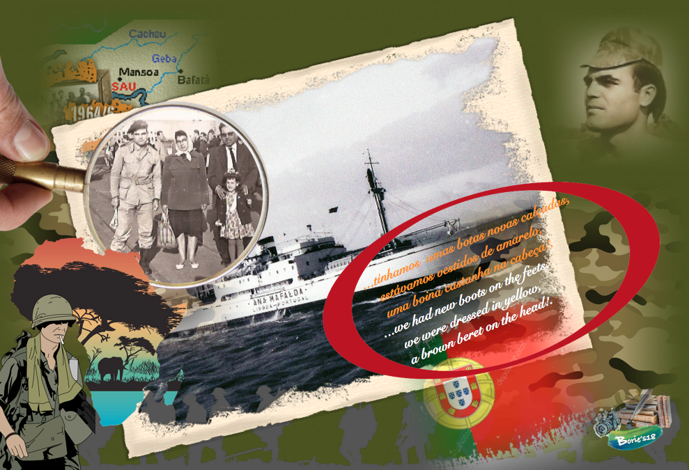 …”em comissão militar por imposição”, (assim está escrito na nossa caderneta militar), entrámos no navio de carga “Ana Mafalda”, fretado pelo governo de então, tal como de uma qualquer mercadoria se tratasse, navegando para sul no Oceano Atlântico, com a missão de participar na Guerra Colonial em África, desembarcando na então Província Colonial da Guiné Portuguesa, sete dias depois, onde nos diziam que o nosso País Portugal se envolvia naquela, para nós maldita guerra, para defender a sua bandeira, o seu orgulho Colonial, de uma história com mais de quinhentos anos!. (“In military commission by imposition”, (this is written in our military cadet), we entered the cargo ship “Ana Mafalda”, chartered by the then government, as any merchandise, sailing south in the Atlantic Ocean, with the mission to participate in the Colonial War in Africa, landing in the then Colonial Province of Portuguese Guinea, seven days later, where they told us that our country Portugal was involved in that, for us damn war, to defend its flag, its Colonial pride, a history of more than five hundred years)!.