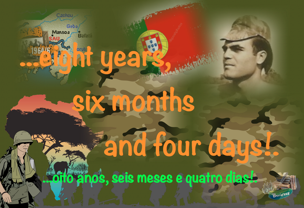 …os guerrilheiros sabiam disto, estavam bem treinados, agressivos e equipados com uma preponderância de armas automáticas com muitas munições, e nós, “éramos quase uns soldados sem um país”, para ali mandados, para longe das aldeias, vilas ou cidades onde nascemos, para longe do nosso continente, treinados à pressa e mal, com equipamento de combate quase absoleto, mal alimentados ou sem assistência médica, desmoralizados, vendo morrer os nossos companheiros, que ficaram ali enterrados na lama dos pântanos para sempre!. Alguns comandantes diziam, “que as tropas em cenário de guerra, não deviam ficar tão preocupadas com as baixas, para que esqueçam o inimigo, pois podiam naquele momento crítico, sofrer mais baixas na tentativa de recuperar ou ajudar os seus feridos”!. Naquela época, “éramos quase uns soldados sem um país”!. (The guerrillas knew this, were well trained, aggressive and equipped with a preponderance of automatic weapons with lots of ammunition, and we, “we were almost soldiers without a country”, sent there, away from villages, towns or cities where we were born, away from our continent, trained in haste and evil, with combat equipment almost stale, ill fed or without medical assistance, demoralized, watching our companions die, who were buried there in the marsh mud forever!. Some commanders said, “that the troops in a war scenario should not be so preoccupied with casualties as to forget the enemy, for they could at that critical moment suffer more casualties in an attempt to recover or help their wounded”!. At that time, “we were almost soldiers without a country”)!.