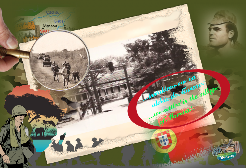 …em Julho do ano de 1964, instalámo-nos na aldeia de Mansoa, numas ruínas de um antigo convento de uma seita religiosa Francesa, sendo então criados na Zona Oeste, os sectores das aldeias de Mansabá e de Teixeira Pinto, em diferentes datas, com vista ao incremento operacional, pois a guerra desenvolvia-se rápidamente e, cuja actividade foi direccionada, especialmente para as regiões do Morés, Mansabá, Bissorã e Olossato!. Em outras palavras, pertencíamos a um comando sem armas, mas que infelizmente directa ou indirectamente dava ordens para matar!. (In July 1964, we settled in the village of Mansoa, in the ruins of a former convent of a French religious sect, and the sectors of the villages of Mansabá and Teixeira Pinto were dates, with a view to the operational increase, since the war was developing rapidly, and whose activity was directed, especially for the regions of Morés, Mansabá, Bissorã and Olossato!. In other words, we belonged to a command without weapons, but that unfortunately directly or indirectly gave orders to kill)!.