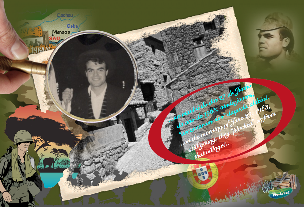 …com toda esta vivência, já nos considerávamos “outra pessoa”, com diferente “atitude”, um pouco mais frios, desconfiados, talvez um pouco calculistas, com mêdo de tudo e de todos, pelo menos enquanto não houvesse conhecimento do cenário em que nos encontrávamos naquele momento, não sorriamos frequentemente, no nosso corpo e talvez na nossa alma, já existiam algumas “marcas”, não éramos mais aquele jovem risonho e amável que saíu da nossa aldeia, lá encosta agreste da montanha do Caramulo, naquele Portugal da Europa distante!. (With all this experience, we already considered ourselves “another person”, with different “attitude”, a little colder, distrustful, perhaps a little calculating, with fear of everything and everyone, at least until there was knowledge of the scene in which we were at that moment, we did not smile often, in our body and perhaps in our soul, there were already some “marks”, we were no longer that smiling and kind young man who left our village, on the rugged slope of Caramulo Mountain, in that Portugal of distant Europe)!.