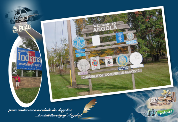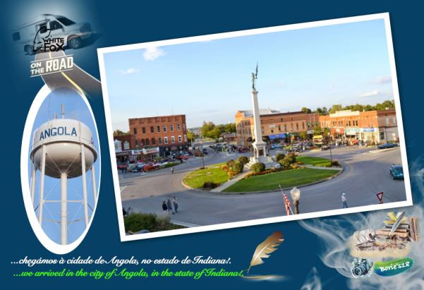 …chegámos à cidade de Angola, no estado de Indiana!. Andámos por lá, é uma cidade com um nome africano e uma comunidade branca, que recebeu o seu nome por volta do ano 1837, numa época em que o local foi escolhido como sede de um município e, possívelmente foi baptizado com este nome, antes que não houvesse outro lugar conhecido chamado Angola aqui nos USA, ou em qualquer outro lugar, excepto em África!. (We arrived in the city of Angola, in the state of Indiana!. We walked there, it is a city with an African name and a white community, which was named after the year 1837, at a time when the place was chosen as the seat of a municipality and was possibly baptized by that name, before that there was no other place known as Angola here in the USA, or anywhere else except Africa)!.
