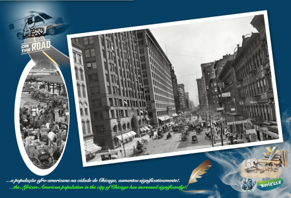 …com as Grandes Migrações de 1910 a 1960, que trouxeram centenas de milhares de afro-americanos do sul para Chicago, tornando-se num movimento de massas, a que alguém explicou que, “A migração de afro-americanos do sul rural para o norte urbano transformaram radicalmente a cidade de Chicago, tanto política como culturalmente”!. E, o nosso companheiro de trabalho afro-americano, o “Mississippi”, dizia-nos mesmo que, a cidade de Chicago se tornou na capital afro-americana do país, pois o lado sul tornou-se predominantemente afro-americano!. (With the Great Migrations from 1910 to 1960, which brought hundreds of thousands of south African Amerians south to Chicago, becoming a mass movement, to which someone explained that, “The migration of Afro-Americans from the rural south to the urban north radically transformed the city of Chicago, both politically and culturally”!. And, our African-American workmate, the “Mississippi”, even told us that the city of Chicago became the African-American capital of the country, because the south side became predominantly African American)!.