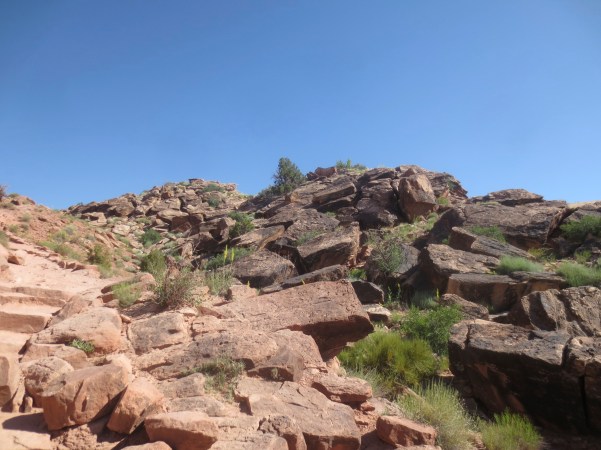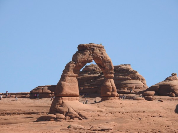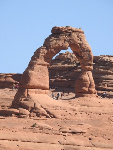 …todavia, principalmente as pessoas mais novas, aquelas que ainda possuiem o previlégio de poderem caminhar sem qualquer restrição, subindo e descendo por algumas trilhas com precipícios, com a distância de aproximadamente 3 milhas no percurso de ida e volta, podem ir até junto do “Delicate Arch”, que sem qualquer dúvida, está no topo das listas de afazeres de muitos visitantes!. (However, especially the younger people, those who still have the privilege of being able to walk unrestrictedly, up and down some precipitous trails, with a distance of approximately 3 miles on the round trip, can go up to next to the “Delicate Arch”, which without a doubt, is at the top of many guest’s to-do lists)!.