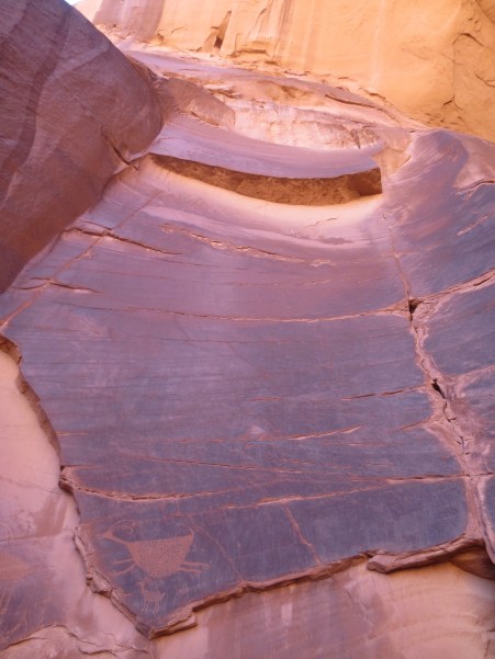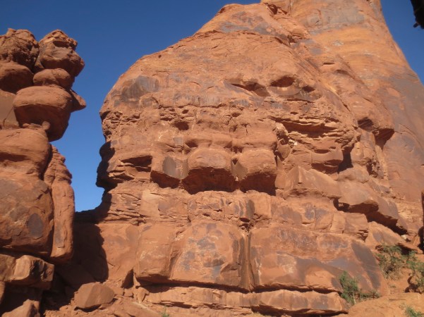 …esta formação é conhecida como Entrada de Arenito!. Com o tempo, rachaduras superficiais, juntas e dobras dessas camadas foram saturadas com água!. O gelo que se formou nas fissuras, foi derretendo sob o extremo calor do deserto e, os ventos eliminaram algumas partículas soltas, no entanto uma série de barbatanas permanentes permaneceu, onde o vento e a água atacaram essas barbatanas até que, em alguns, o material cimentante cedeu e pedaços de rocha caíram!. (This formation is known as Sandstone Entrance!. Over time, surface cracks, joints and folds of these layers were saturated with water!. The ice that formed in the fissures melted under the extreme heat of the desert, and the winds eliminated some loose particles, but a series of permanent fins remained, where the wind and water attacked these fins until, in some, the cementing material gave way and pieces of rock fell)!.