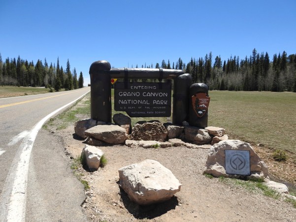 …esta floresta, que agora atravessámos única e simplesmente para visitar as margens norte/oeste do Grand Canyon Nacional Park (Parque Nacional do Grande Desfiladeiro), é um lugar para a proteção de animais e aves de caça e é reconhecido como um local de reprodução que, por volta do ano de 1908, a Reserva Florestal ao norte do Grand Canyon, incluindo esta reserva de caça, foi renomeada Floresta Nacional de Kaibab, sendo criada a partir das terras de serviço florestal ao redor do Grand Canyon!. (This forest, which we have now crossed only and simply to visit the north / west shores of the Grand Canyon National Park, is a place for the protection of animals and game birds and is recognized as a local which by the year 1908, the Forest Reserve north of the Grand Canyon, including this hunting reserve, was renamed Kaibab National Forest, being created from the forest service lands around the Grand Canyon)!.