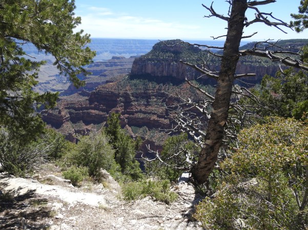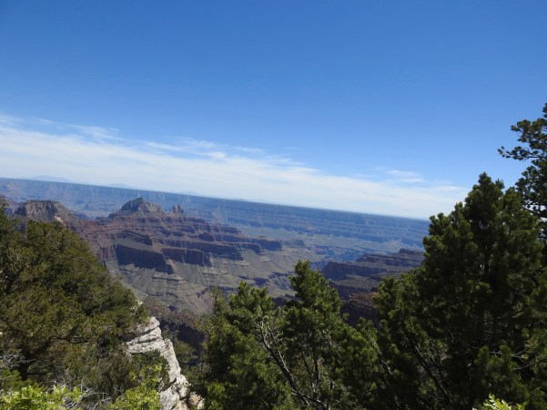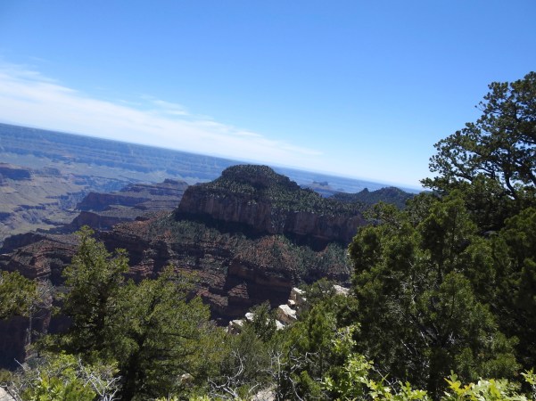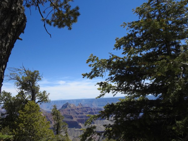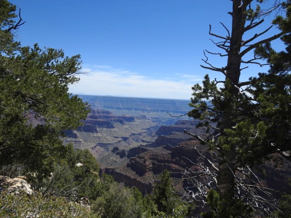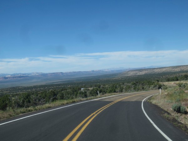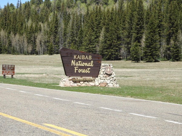 …percorrendo estes lugares, desviámo-nos demasiado para norte, tendo que, num determinado lugar estratégico voltar a viajar por uma estrada única para sul, atravessando a Floresta Nacional de Kaibab, que faz fronteira com as margens norte e sul do Grand Canyon, no centro-norte do estado do Arizona!. (Traveling through these places, we have gone too far north, having to travel in a certain strategic place on a single road to the south, crossing the Kaibab National Forest, which borders the north and south banks of the Grand Canyon, in the north-central part of the state of Arizona)!.