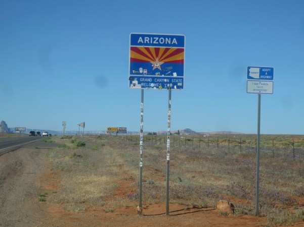 …seguindo na direcção sul/oeste pela estrada cénica US-163, entrámos no estado de Arizona, sempre rodeados de pequenas formações geológicas em arenito, que ao construirem esta estrada, as deixaram intactas ao seu lado, para que fossem admiradas, preservando-as para a eternidade!. (Going south / west along the US-163 scenic road, we entered the state of Arizona, always surrounded by small geological formations in sandstone, which, when they built this road, left them intact at their side, so that they would be admired, preserving them for eternity)!.
