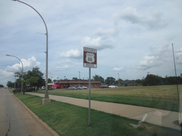 …aqui, no estado de Oklahoma, podemos viajar por longas e desérticas rectas, no entanto tal como já mencionámos anteriormente, sempre que nos era possível, também usávamos alguns troços da famosa e Histórica Estrada 66, que ainda estavam lá, oferecendo-nos o prevlégio de os usar, tal como os nossos antepassados fizeram muitos anos atrás a caminho da Califórnia!. (Here, in Oklahoma, we can travel long and deserted straits, but as we mentioned earlier, whenever possible, we also used some sections of the famous and historic Highway 66, which were still there, offering give us the privilege of using them, just as our ancestors did many years ago on their way to California)!.