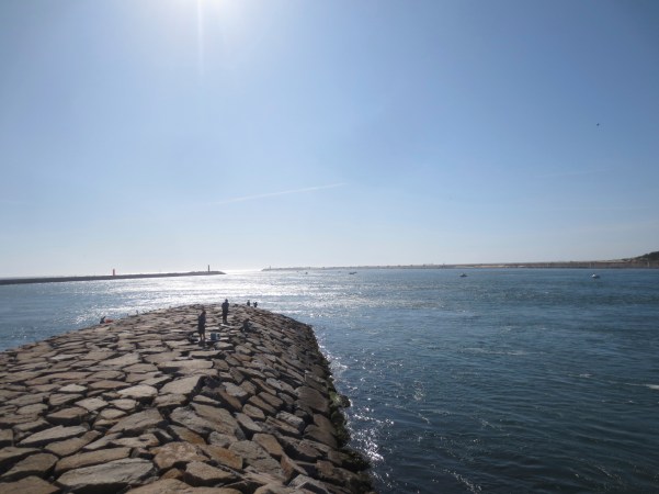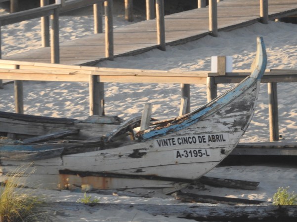 …um barco vinha entrando a Barra, apitava constantemente, os seus tripulantes faziam sinais e, algumas pessoas também acenavam de terra, erguendo os braços ao céu em sinal de agradecimento ao Salvador!. Era um grupo que entendemos nós, deviam de ser familiares, pois caminhavam, alguns quase corriam, pela pequena avenida, acompanhando o barco que navegava em direcção ao Cais do Porto e, quando já não era possível esse acompanhamento, iam correndo para os seus veículos, talvez desejosos de se irem encontrar, lá no Porto das Gafanhas!. (A boat was coming into Barra, beeping constantly, its crew members were signaling and some people also waved from the ground, raising their arms to the sky in thanksgiving to the Savior!. It was a group that we understand, they should be familiar, because they walked, some almost ran, along the small avenue, accompanying the boat that sailed towards Porto Quay and, when this monitoring was no longer possible, they ran to their vehicles, maybe looking forward to meeting you there at Porto das Gafanhas)!.