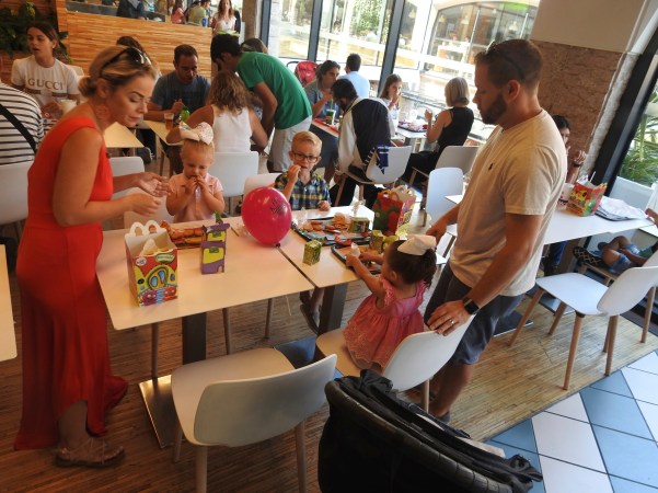 …adiante!. Hoje fomos à cidade de Aveiro, as crianças andavam felizes, visitaram o restaurante “McDonald’s”, todas tiveram um “Happy Meal”, ou seja, bocados de galinha frita e batatas também fritas, com aqueles molhos todos que sempre nos servem nuns pacotinhos e, desta vez ofereceram-lhes um balão a cada um, que os acompanhou até o rebentarem ou o perderem!. (Forward!. Today we went to the city of Aveiro, the children were happy, visited the restaurant “McDonald’s”, all had a “Happy Meal”, ie fried chicken and potato chips, with those sauces that always serve us in little packages and, this time they offered each one a balloon, which accompanied them until they burst or lost)!.