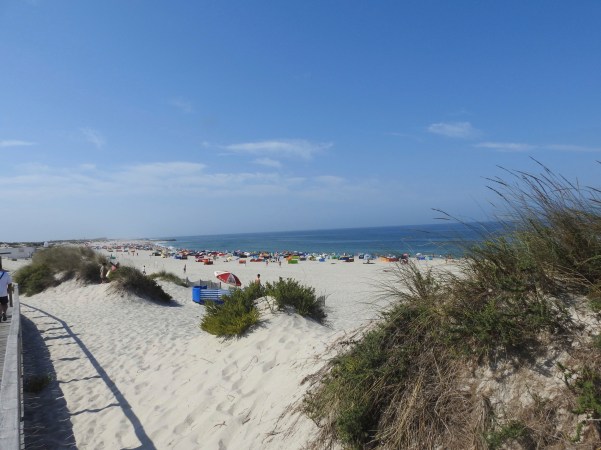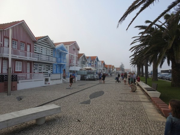 …o sol já se tentava esconder quando deixando esta cidade, viajámos para a praia da Costa Nova, tentando seguir o mesmo trajecto que seguíamos quando jovens, no entanto era impossível, hoje existem pontes em cimento sobre a Ria de Aveiro e uma auto-estrada sem curvas, o que nos fez chegar ao nosso destino ainda com algum sol!. (The sun was already trying to hide when we left this city, we traveled to the beach of Costa Nova, trying to follow the same path we followed when young, however it was impossible, today there are concrete bridges over the Ria de Aveiro and a car road without curves, which made us reach our destination still with some sun)!.
