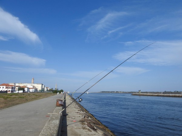 …na nossa juventude, por aqui ficaram alguns amigos, tal como o Zé Pesca, filho de pescador, que vivia nos “Palheiros” da Costa Nova e que ajudávamos a apanhar isca junto à Ria na maré baixa, ou o senhor “Miguel das Bateiras”, que alugava barcos junto ao cais de embarque para os barcos moliceiros que também transportavam pessoas, que partiam periódicamente para as Gafanhas e, depois de ajudarmos a retirar a água das bateiras, navegava pela ria connosco, onde em algumas áreas passávamos sobre o moliço, com os peixes fugindo na frente, tudo isto para verificar se as bateiras não metiam água de novo!. (In our youth, some friends stayed here, such as Zé Pesca, son of a fisherman, who lived in the “Palheiros” of Costa Nova and who helped to catch bait by the Ria at low tide, or Mr. “Miguel das Bateiras”, which rented boats from the quay to moliceiro boats that also carried people, who departed periodically to Gafanhas and, after helping to remove the water from the drums, sailed along the ria with us, where in some areas we passed over the reed, with the fishes running in front, all to make sure the drums didn’t get water again)!.