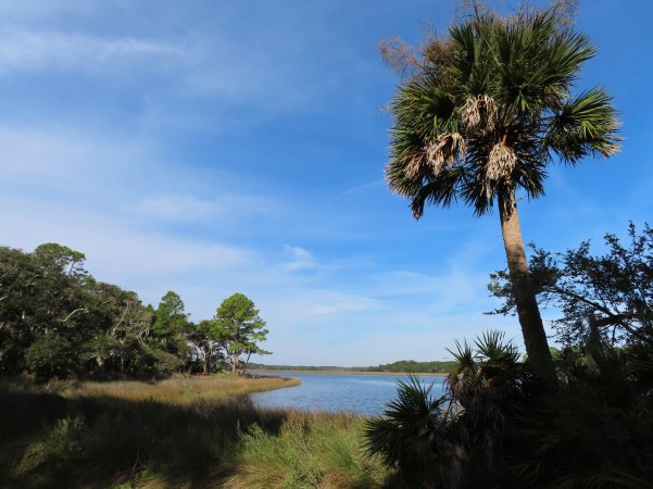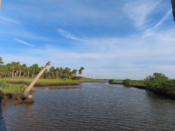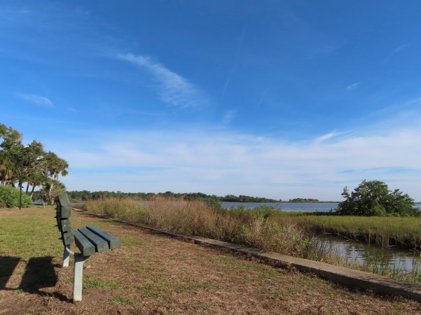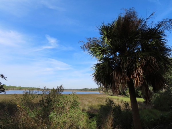 …podemos caminhar ao longo das margens do Riacho Pellicier ou através de alguns pântanos de água salgada, com maravilhosas vistas da baía e dos estuários ou até de lagoas alimentadas por nascentes e viveiros de pássaros!. (We can walk along the banks of the Pellicier Creek or through some saltwater marsh with wonderful views of the bay and estuaries or even spring-fed ponds and bird ponds)!.