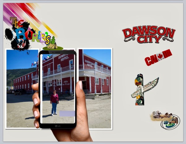 …esta amável senhora, também nos contou que, a cidade de Dawson, foi criada nos primeiros dias da corrida ao ouro em Klondike, quando um pesquisador de ouro, talvez bem sucedido, se juntou a um comerciante e, decidiram lucrar com o influxo de pessoas para esta região, comprando 178 acres de lodaçais na junção dos rios Klondike e Yukon ao governo, traçando o plano da nova cidade, trazendo madeira e outros equipamentos, para vender aos que a todo o momento chegavam!.
