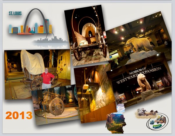 …no seu pedestral, tem um museu com motivos do oeste, e exemplificando o que os emigrantes faziam e usavam a caminho do oeste, depois de terem viajado, talvez por anos, no rio Mississippi, vindos dos portos de Boston, New York ou Philadelphia, que depois de saírem de São Luis, levavam outros tantos anos a chegar à Califórnia, ou mesmo ao sul, viajando pela “Santa Fé Trail”, que também era conhecida pelo “Caminho Real”, que era um caminho que os levava às regiões do sul, junto à fronteira do México!.