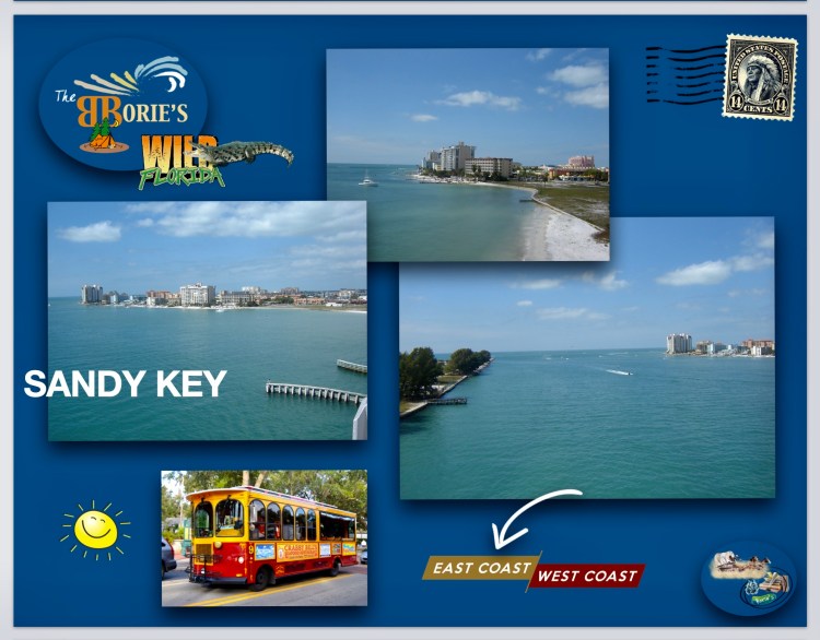 (…and of course, the Trolley (public transport vehicle), passes every thirty minutes, but as we love hiking, we sometimes cross the Sandy Key bridge, which rises to about 65 feet in height, showing us a beautiful view the Gulf of Mexico, as well as the skyline of downtown Clearwater and its beach, where our choices do not end when the sun goes down, which in itself is a spectacle)!.