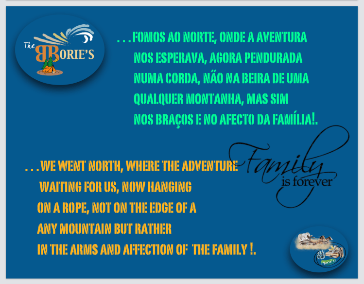 …enfim, vamos para o norte, a aventura espera-nos, talvez agora pendurada numa corda, não na beira de uma qualquer montanha, mas sim nos braços e no afecto da família!.