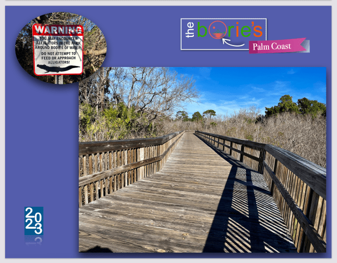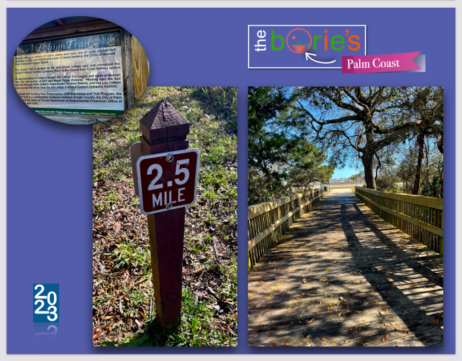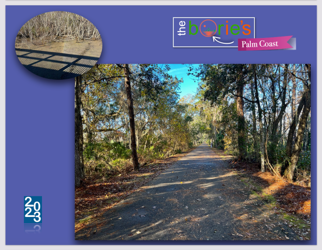 …was built with a long distance of wooden walkways over a marshy area, then following the aforementioned route of an abandoned railway corridor, in tarmac and some parts in cement, with only two level crossings on Old Kings Road and Belle Terre Parkway, offering hikers like us a taste of wild Florida and some of the best landscapes with trees that surround the trail practically throughout the distance!.