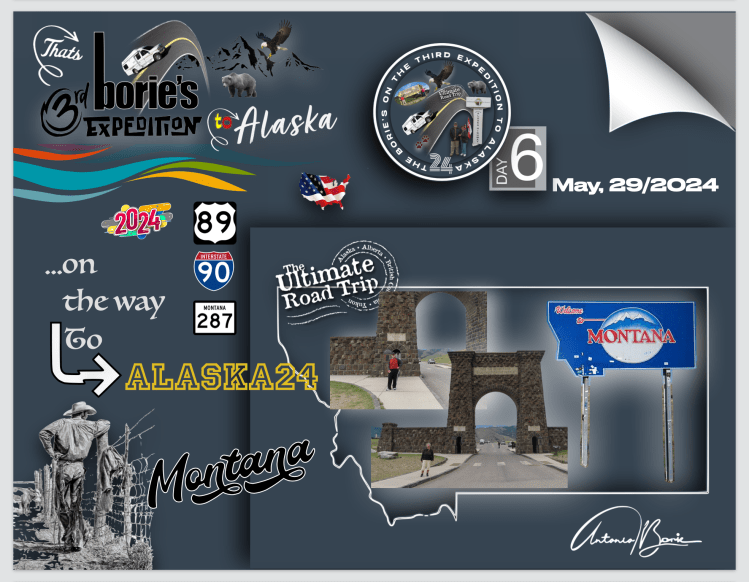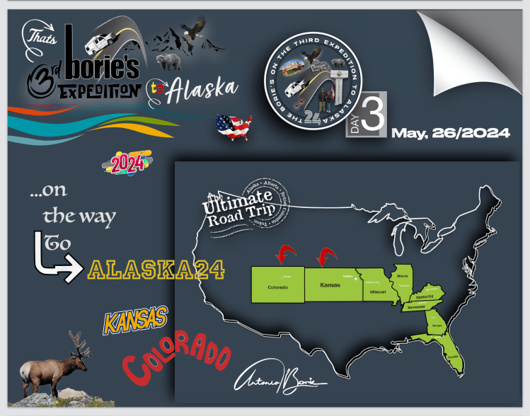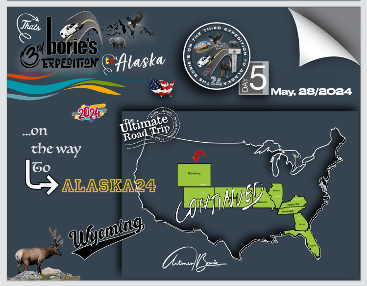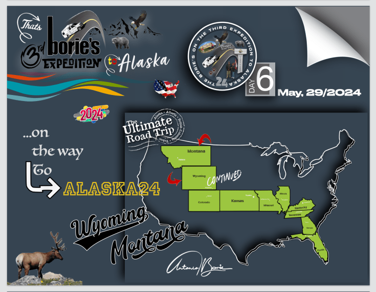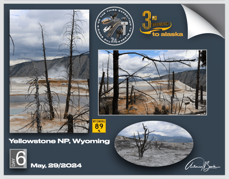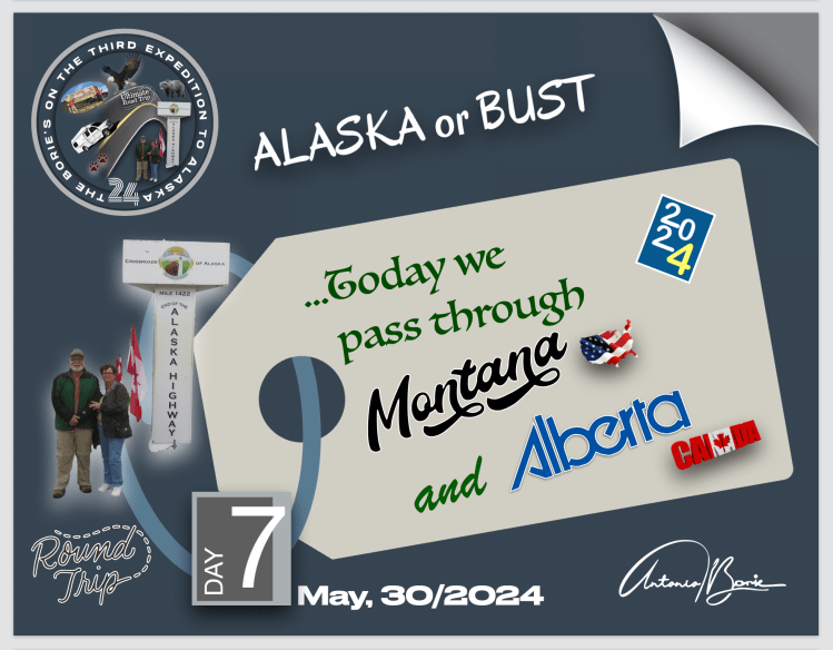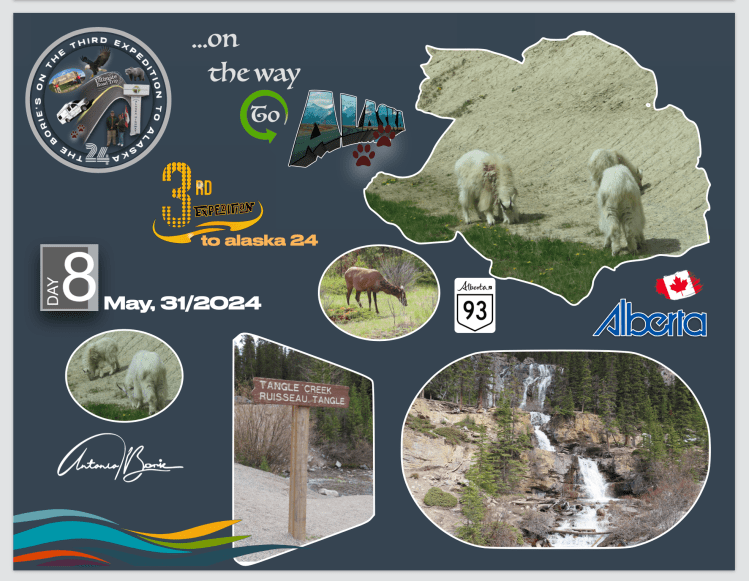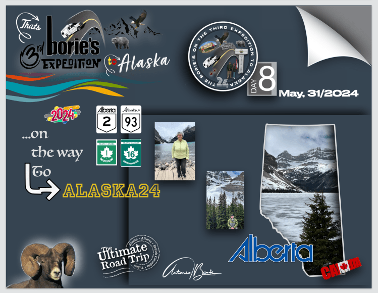 …era o nosso primeiro dia nesta Terceira Expedição ao Alaska, e de repente, percebemos que estávamos aqui, realmente aqui, e poderíamos ir fazer o que quiséssemos!. Isto deixou-nos um tanto atordoados, porque havia tanto para ver e fazer…, e o que seria primeiro?. Decidimos então estabelecer uma meta facilmente alcançável, talvez uma semana mais uns dias, o máximo duas semanas, e para começar viajámos para sul!.