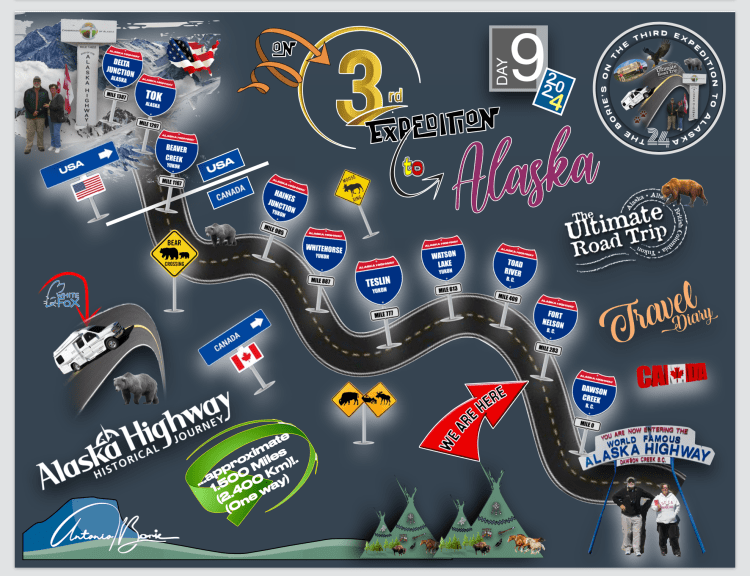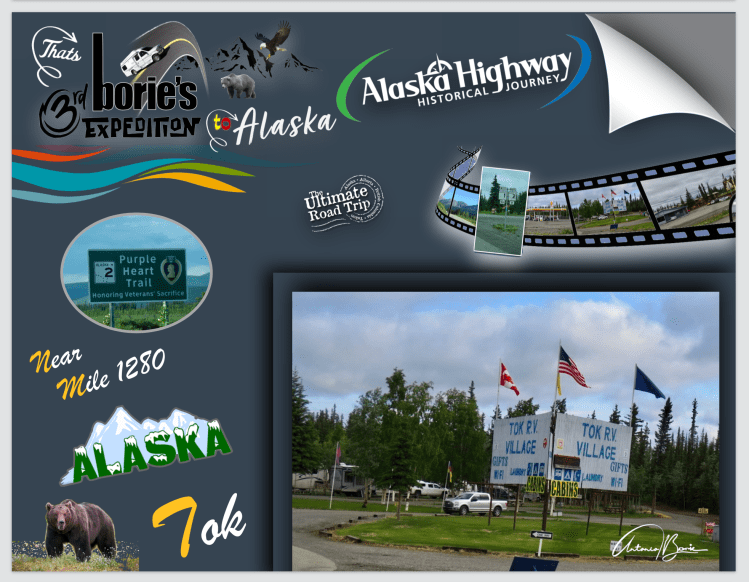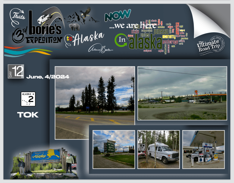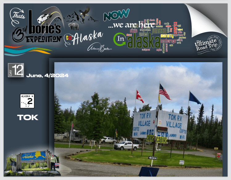 …a manhã estava fresca quando saímos da cidade de Tok, que é a comunidade com mais facilidades, pelo menos para viajantes, que se situa mais perto da fronteira, e que se encontra numa planície aluvial muito grande e plana, do Vale Tanana, entre o Rio Tanana e o Alaska Range, que é uma cordilheira de montanhas que se avista ao norte!.