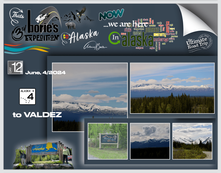 …always heading south, we stopped at Glennallen, which is a small “oasis”, at a crossroads!. Here, whoever heads south goes to Valdez, which was our destination! The village, has a Visitor Center, and lies along Glenn Road at its junction with Richardson Road, and just outside the western boundary of Wrangell-St. Elijah!
