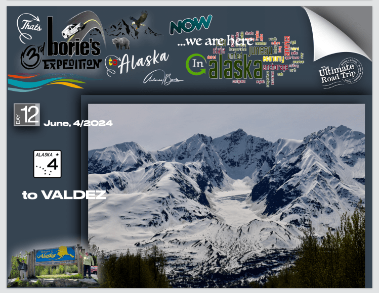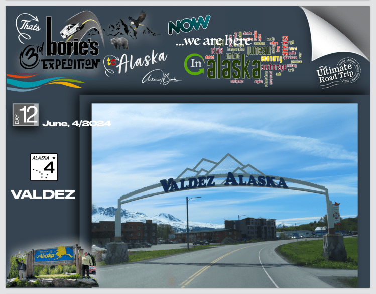 …in the meantime we arrived at our destination, which was the city of Valdez at “mile 0” on the Richardson Road!. This small town, like many others in Alaska, has a history of the “Gold Rush”, founded in 1790, by Spanish explorer Salvador Fidalgo, named after Spanish Minister of the Navy Antonio Valdés, is located at the head of a fjord on the east side of Prince William Sound!.