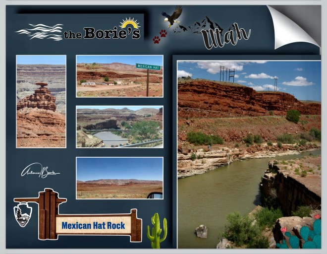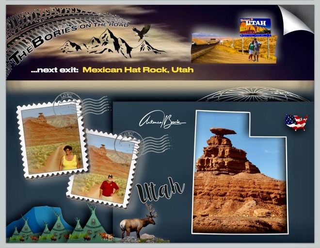 …this is what happened to us when we traveled south by the U.S. #163, just before, but still outside the boundaries of Navajo Nation and Monument Valley, on the left, noticing this unusual monument in red sandstone, which gives the “Mexican hat”, which comes from a rock curiously in the northeast end of the city with the same end name!.