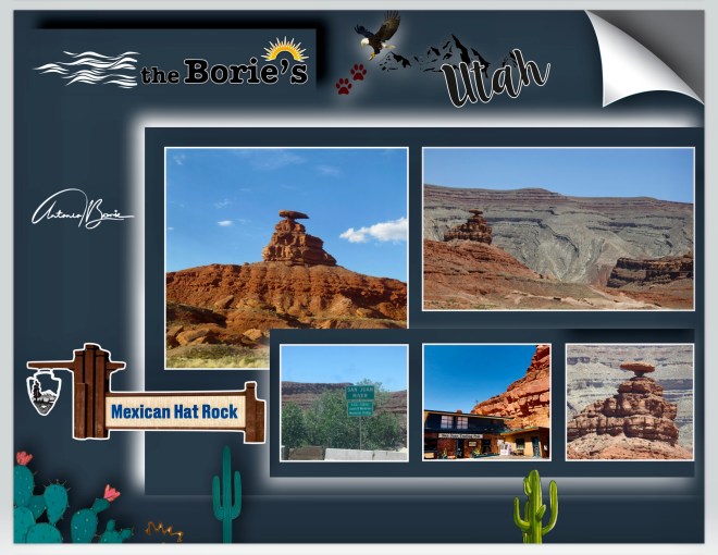 …foi o que nos aconteceu quando viajávamos em direcção ao sul pela estrada U.S. #163, um pouco antes, mas ainda fora dos limites da Navajo Nation e do Monument Valley, ao lado esquerdo, reparando neste unusual monumento em arenito vermelho, a que dão o nome de “Chapéu Mexicano”, que vem de uma rocha curiosamente em forma de “sombrero” na extremidade nordeste da cidade com o mesmo nome!.