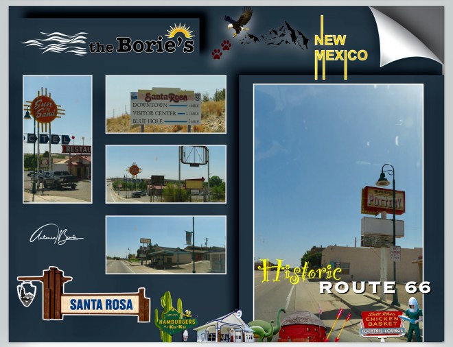 …e continuando passámos na cidade de Santa Rosa, que ainda hoje continua um ícone mundialmente famoso da “Route 66” daquela época, como por exemplo o rosto sorridente e satisfeito do Fat Man (homem gordo), que era quem atraía os visitantes do Club Café, conhecido pela sua comida caseira, biscoitos azedos e tortilhas mexicanas de milho azul, e claro, pelo seu Museu com uma grande colecção de carros antigos, camiões, brinquedos, bombas de gasolina e recordações, todos reunidos para celebrar e recordar os dias de glória daquela histórica estrada!.