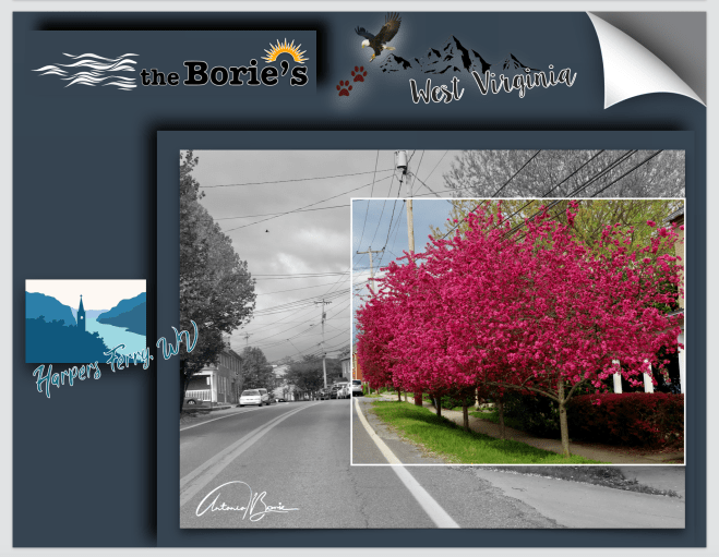 …a tarde já ia avançada, quando chegámos ao vale de Shenandoah na confluência dos rios Potomac e Shenandoah, onde se juntam os estados de Maryland, Virgínia e West Virgínia!. Pernoitámos por ali e, ao outro dia caminhámos pelas ruas calcetadas em pedra, pelas encostas agrestes e pela margem dos rios, parecendo-nos que viajávamos no tempo!.