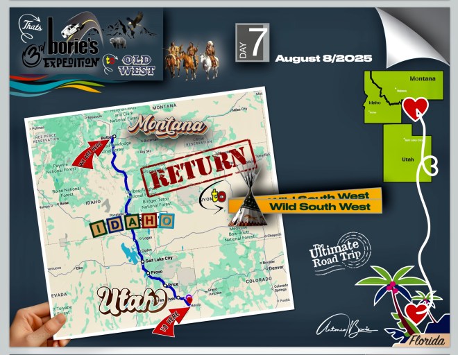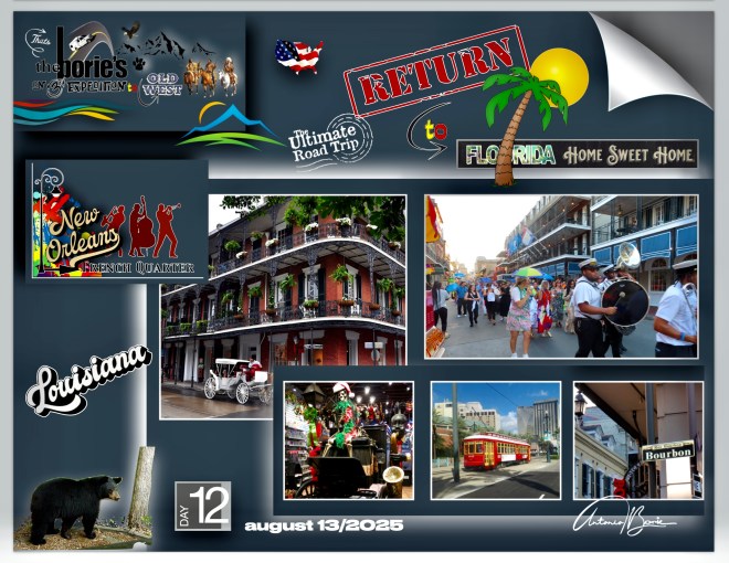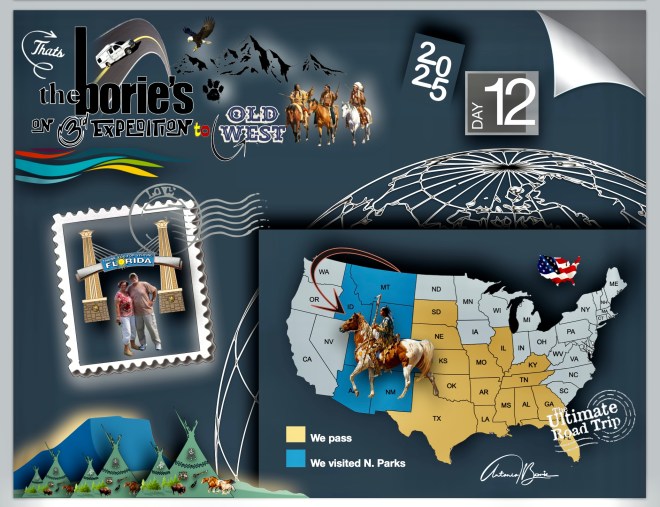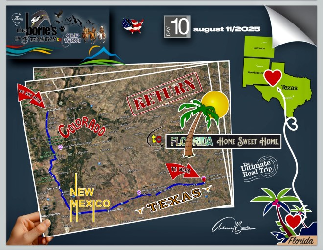 …seguindo depois uma rota para leste, numa direcção de retorno à nossa casa na Florida!, Como tal, deixámos o tal, “Oeste Selvagem de Antigamente” e, todas as cidades, parques nacionais ou lugares históricos que podemos vir a visitar rumo ao leste, serão de retorno à “Florida, lar, doce lar”!. Por favor, fiquem atentos aos próximos episódios!.