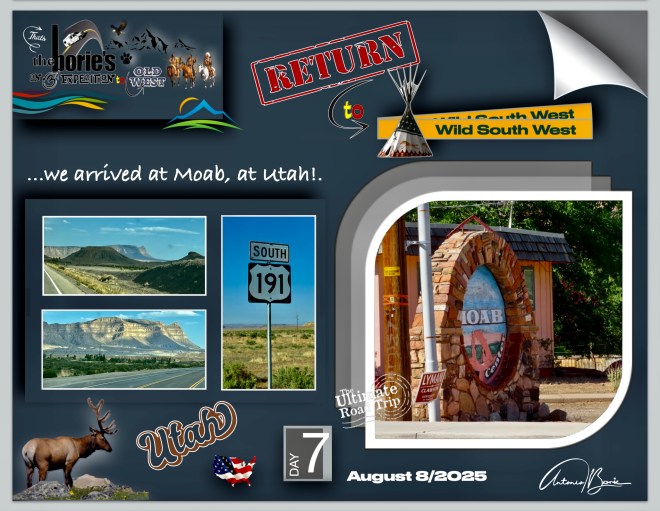 …from here to the Moab region, it was a “jump”, that is, it was fast, where we stayed overnight in a RV and…, the famous fly that had entered the territory of Montana, opening the caravan door, flew to the table where our dedicated wife Isaura, had placed on a table of them in the RV parks, a towel and some food!.