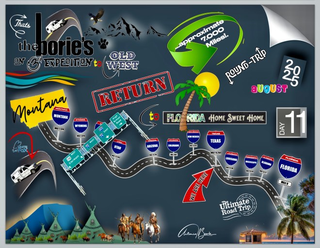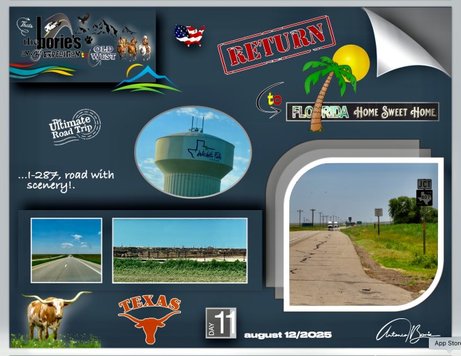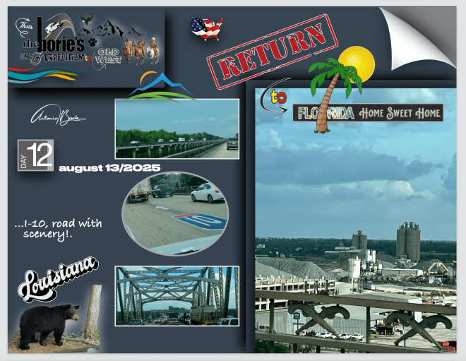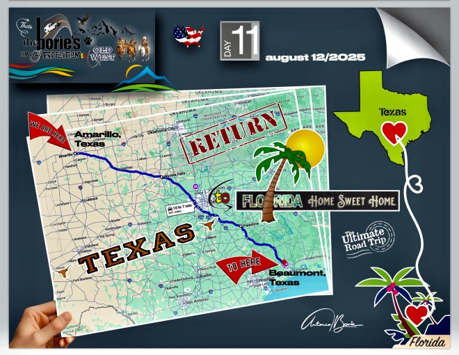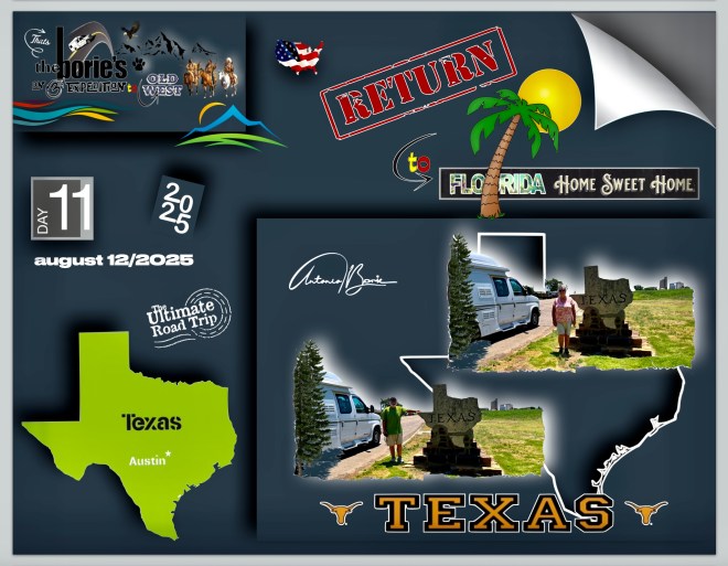 …then following an east route, in a direction of return to our home in Florida!, As such, we left the “Wild West” and, all cities, national parks or historical places that we can visit east, will be returned to “Florida, Home, Sweet Home”!. Please be aware of the next episodes!.