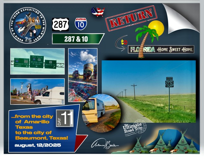 …and after buying coffee, cookies and filling the tank with gasoline in our “White Fox”, we entered the road #287, trying to cross across and toward the south, the long state of Texas, ie reaching the city of Beaumont, still in the aforementioned state of Texas!.