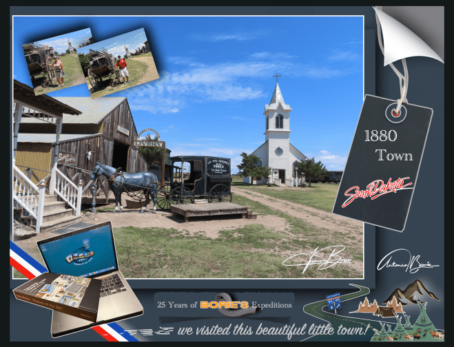 …e a história diz-nos que naquela época, uma empresa de cinema chegou a uma pequena cidade próxima para filmar um filme da era de 1880!. Um conjunto de “rua principal” foi construído a partir de edifícios antigos e várias relíquias e antiguidades indianas!. O inverno instalou-se, as filmagens foram abandonadas e a empresa de cinema voltou para casa, dando a ”Main Street Set” a alguém para o uso dos seus artefactos!. Anos depois, todo este ”set de filmagem”, foi transferido para estes 80 acres e a cidade de 1880 nasceu!.