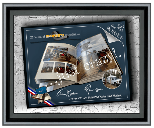 …entre outras viagens, já realizámos três expedições desde o estado da Flórida ao estado do Alaska, várias viagens completas pela Rota 66, percorrendo aproximadamente 80% das estradas mais perigosas, emocionantes e intimidantes dos EUA e Canadá, algumas com declives acentuados, ziguezagues intermináveis, mudanças climáticas repentinas e vistas que exigem toda a nossa atenção, visitando aproximadamente 90% dos parques nacionais dos EUA e do Canadá, incluindo uma expedição à Terra Nova e Labrador, no Canadá!.